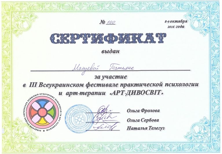 Професійна кваліфікація: Дефектолог. Вихователь дітей з вадами психофізичного розвитку.